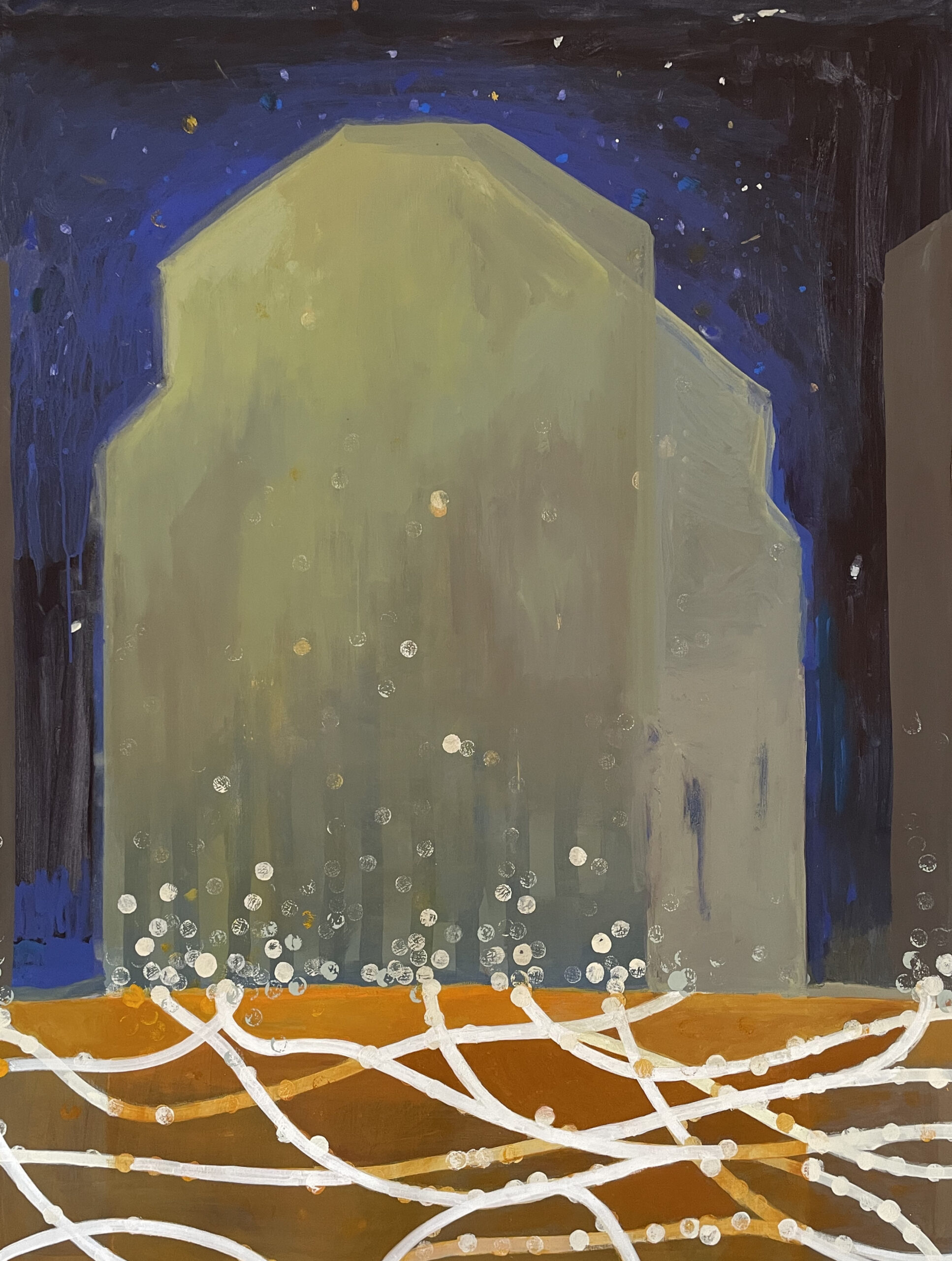 A Tokyo pendant 2 mois – je peins des maisons à la gouache sur des petits papiers achetés sur place. Silhouettes desquelles sourdent la nuit des éclats de lumières. Peut-être si on s’attarde à regarder, on entendra une voix, le claquement des baguettes contre un bol…mais de dehors, on n’entend rien, même à travers ces parois de papier. Rien.